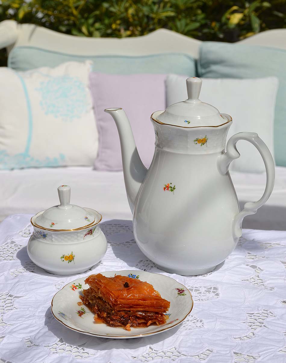 Reading The Embroiderer you get a feel of the elegant and sometimes even sensual etiquette of the Turkish elite of Constantinople. Also when it comes to food. On your blog you write about their tradition of ‘perfuming the house and guests’, like perfuming the teacups before serving tea. Can you tell us a bit more about all of this?