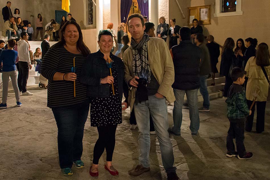 This spirit of harmony was repeated the next evening at Saturday’s resurrection mass, held at the chapel of the Naval base. Here, as midnight arrived and white candles were lit from each other in a benevolent chain reaction, fireworks illuminated the foreshore. At the end, cars jammed the streets, reminiscent of the end of a rock concert, as our happy group walked back to the Odyssey. In keeping with tradition, we were all trying to keep our candles alight until we arrived home, not so much lighting the way as blinding us to oncoming traffic!