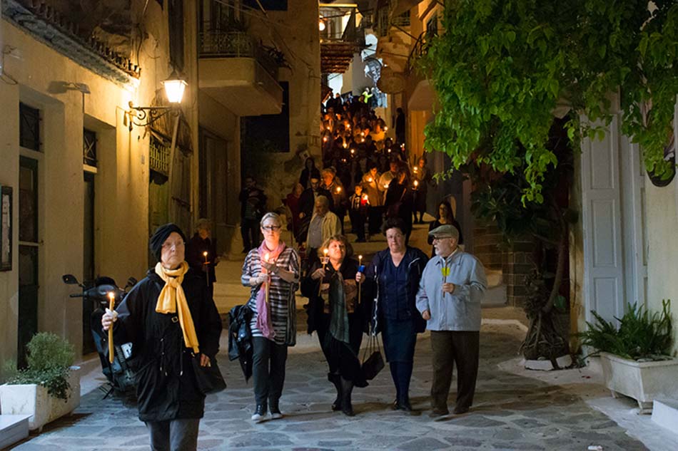 A couple of days later, I was outside St. George’s church in Poros town amongst new friends at the Good Friday mass. All of us were holding traditional brown candles as we joined the procession of townsfolk and visitors, following the flower-covered epitaph through the streets. Whether religious or secular, one cannot fail to be moved and exhilarated by the sights and sounds of a community coming together with such passion.