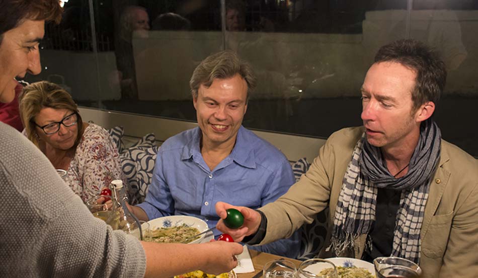 The night concluded with the traditional post-mass meal, but not before Katerina and Rik had challenged everyone to their dyed-egg-tapping contest around the tables. Having honed my skills on English conkers as a boy however, her egg was no match for the rock hard shell of mine, and Al’s invincible egg triumphed. But the greatest treat was yet to come; the Easter Sunday Lamb roast, when family and friends all come together to dine, dance and celebrate.