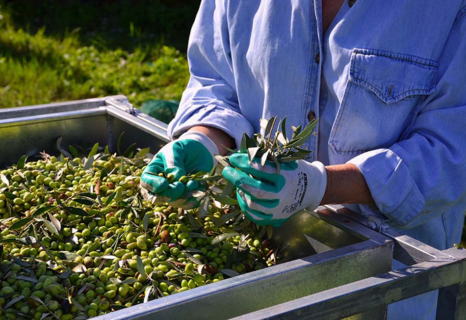 The olives need to be separated from the little leaves and branches.