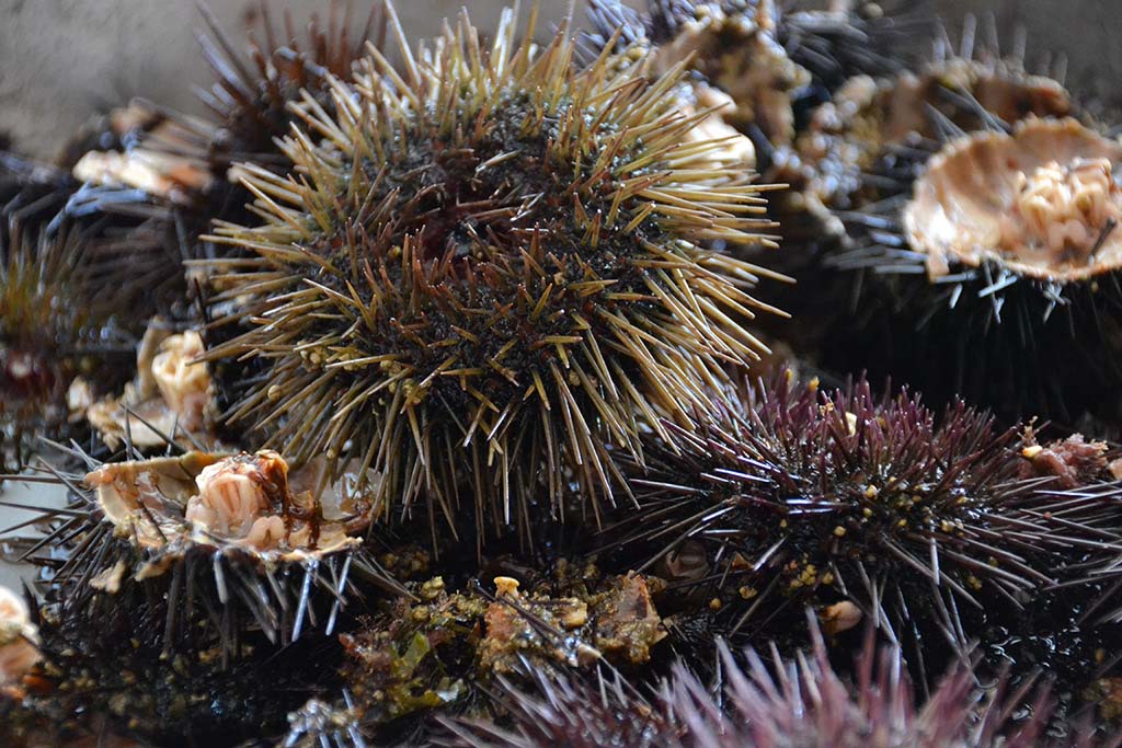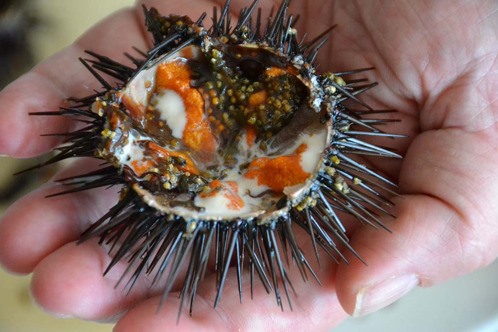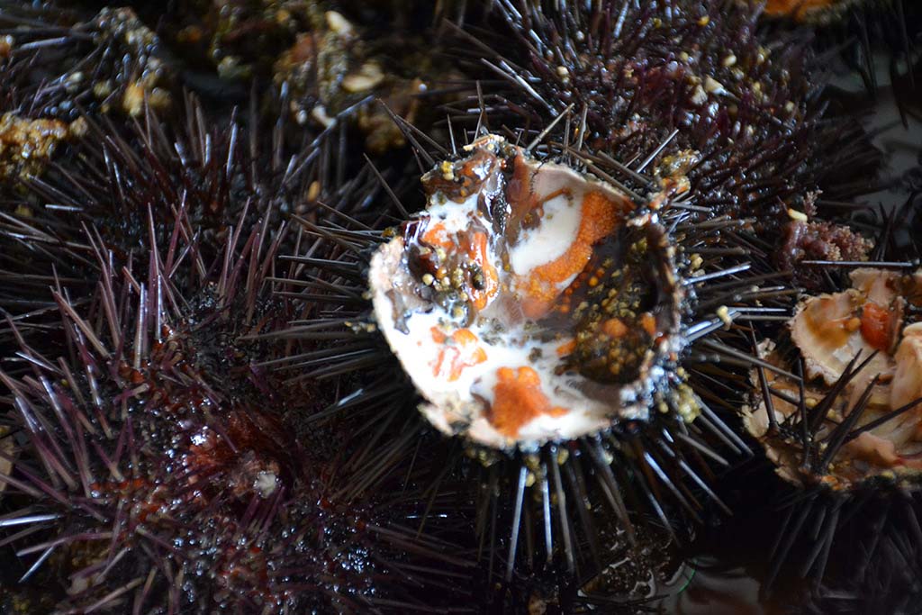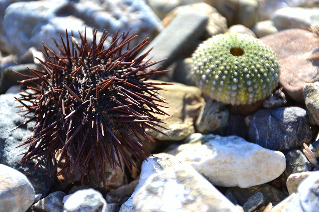 Surely you’ve noticed the sea urchins on rocky beaches. I always warn swimmers to look out for them: stepping on a sea urchin is very painful and trampling them is such a shame as they’re very tasty!