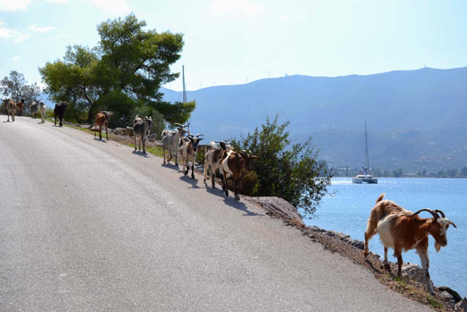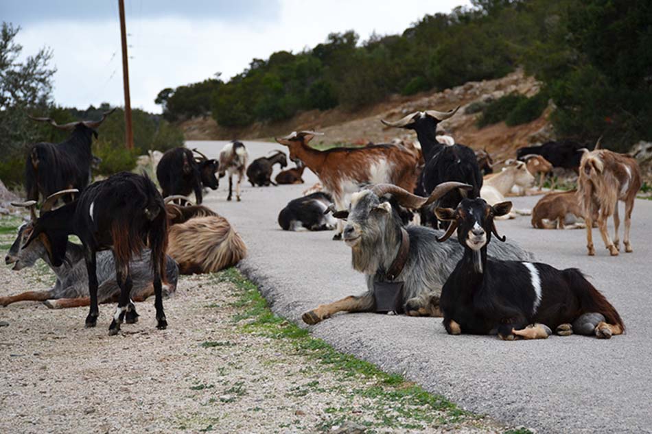 Walking around our beautiful pine tree forest (especially near the area of ‘Bogazi’ close to the picturesque light tower, in the north west of the island), it is rare that you will pass by and not be stopped by a herd of goats walking by the road-side, or just grazing or lying in the middle of the road. The locals almost expect to find them at this point.