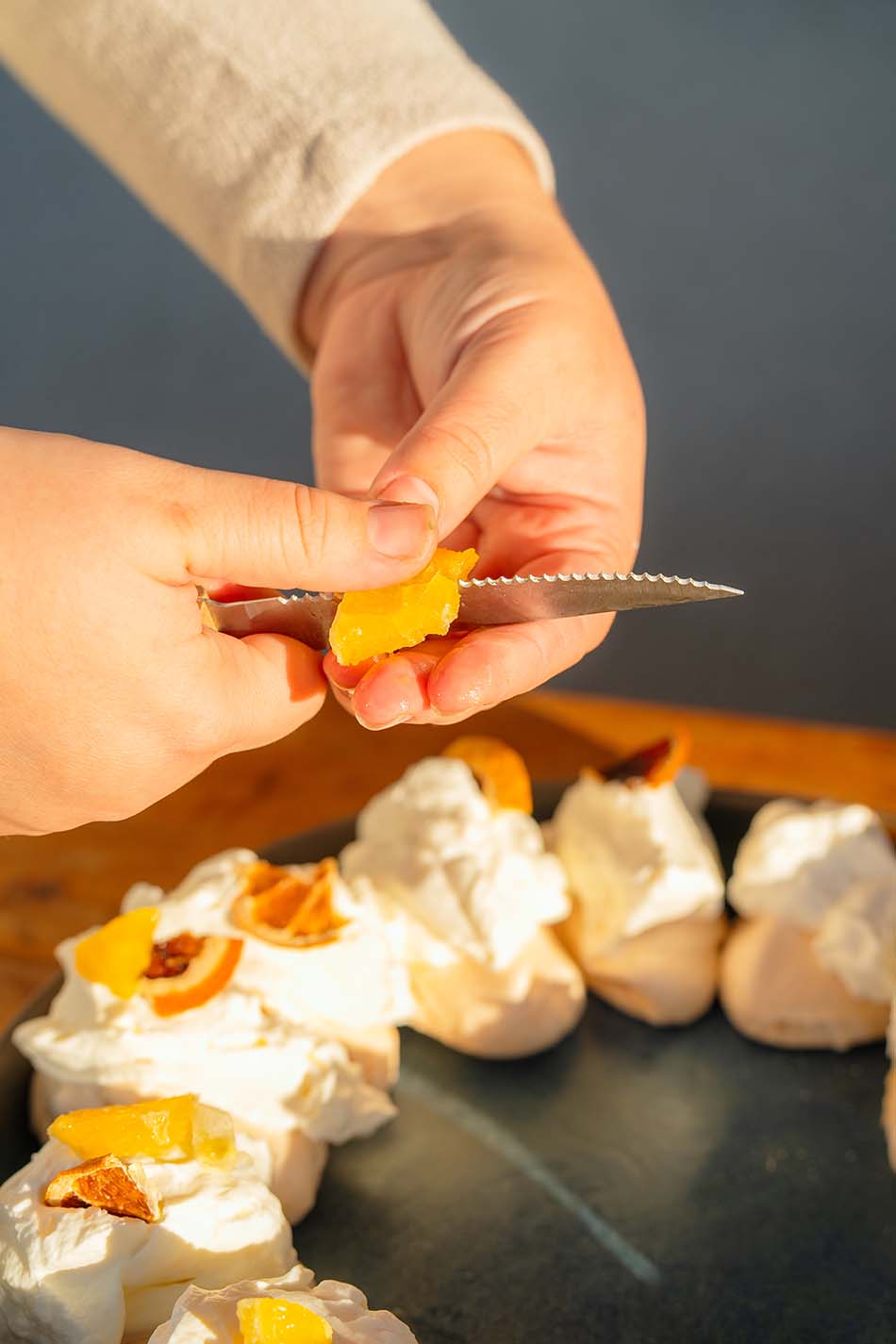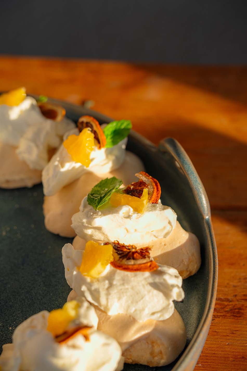 meringue is very sweet, but the fresh orange segments and pomegranate provide a sharp,