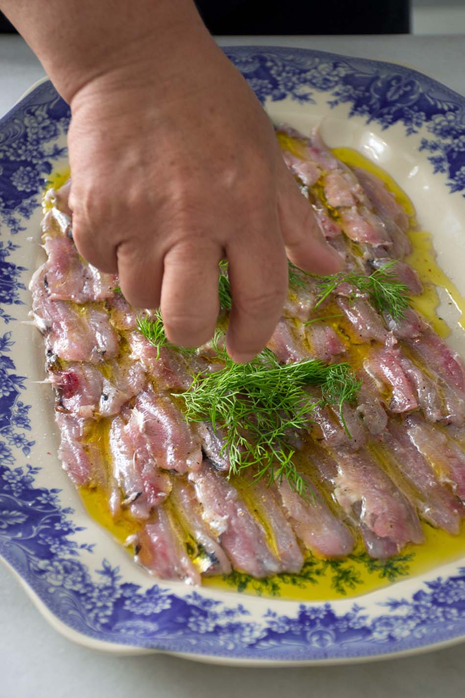 Making marinated raw anchovies