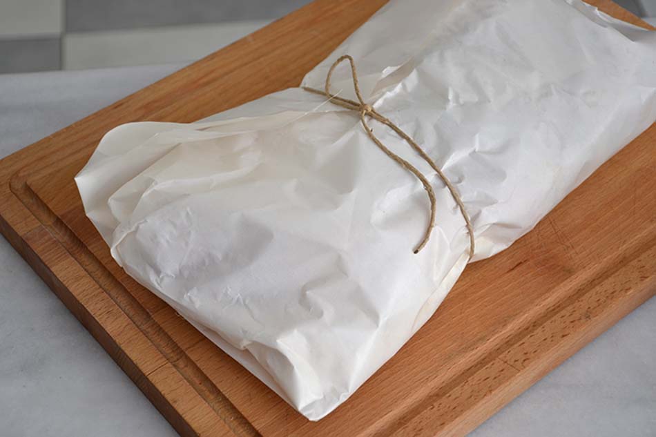 I love this method of cooking; Kleftiko. You prepare your ingredients, put it in the oven, and wait while you drink wine or ouzo. Unpeeled garlic, fresh oregano and rosemary are the essential ingredients. Time is the secret ingredient. For the wrapping up we actually used old newspapers until a decade ago. We had to stop doing this for obvious reasons. My father still thinks the taste isn’t the same as it was back in his day.