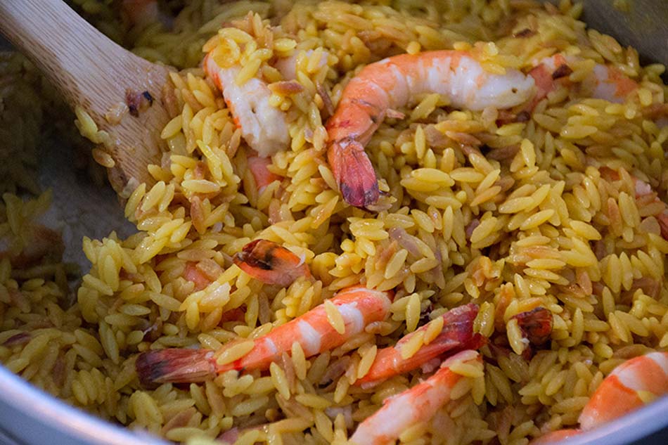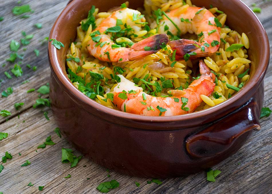 Get ready for a nice and typically summer dish: Prawn Kritharoto! Kritharoto is very popular in Greece. This combination with prawns is a modern recipe inspired by traditional ones. It reminds one of the Italian risotto.
