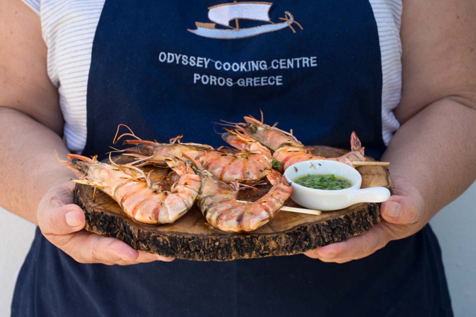 The summer breeze that transports the smell of the sea to Odyssey and the colour of the prawn souvlaki, remind me of the beautiful summer sunsets. Prawn souvlaki is not just food to fill our bellies, it’s like a poem to our senses! When the prawns are coming off the grill and you squeeze a few lemon juice drops on them, you think you are no longer on earth but in heaven.
