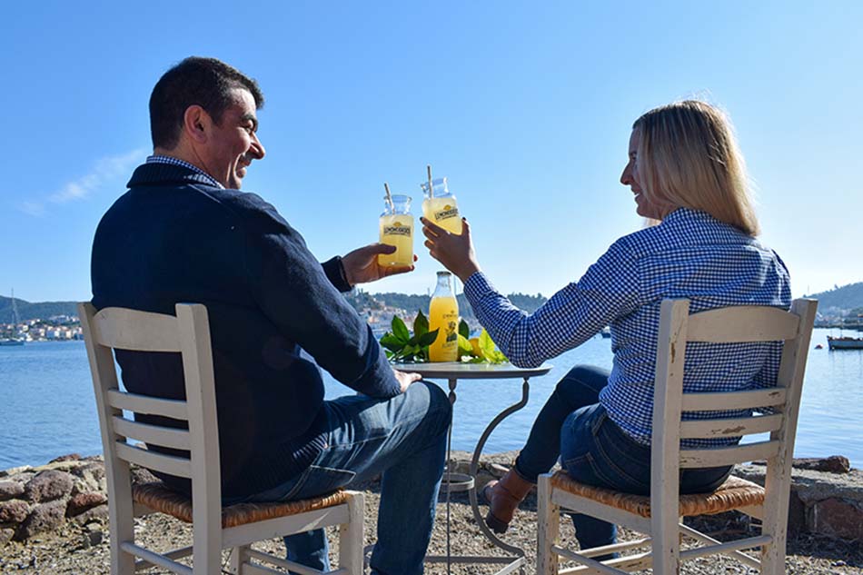 Luckily a few years ago good friends of mine from Galatas, Dimitris Vlachos and his wife Maria, started Lemonodasos. Their lemonade is so good that most bars, restaurants and shops in Poros and Galatas are now selling this beautiful and refreshing drink. They are also selling it in a lot of other places in Greece. Even bigger quality stores are offering it in their outlets.