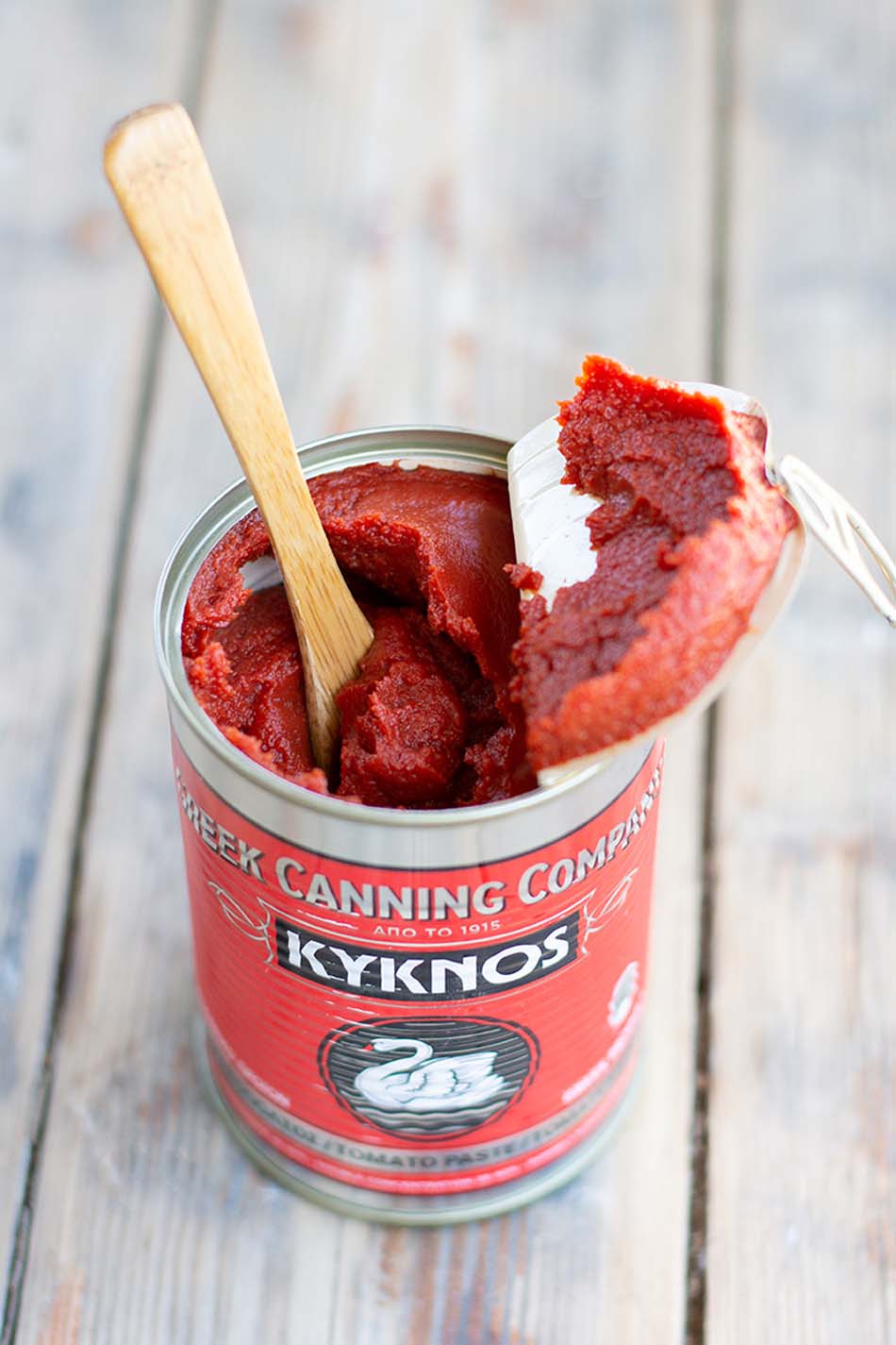 The tomato paste I used is from the Greek brand Kyknos and I love it! It’s a local product from one of the oldest factories of Greece that started near Nafplio (A town close to Poros and in my opinion the most beautiful in Greece) and is still operating in the Peloponnesus. Kyknos has been a family company for more than a century now, and they work with the same tomato seeds that they started with. They are not genetically manipulated so they have tomato varieties that are suitable for our climate and soil characteristics. Kyknos tomatoes are famous for their superb taste and aroma.