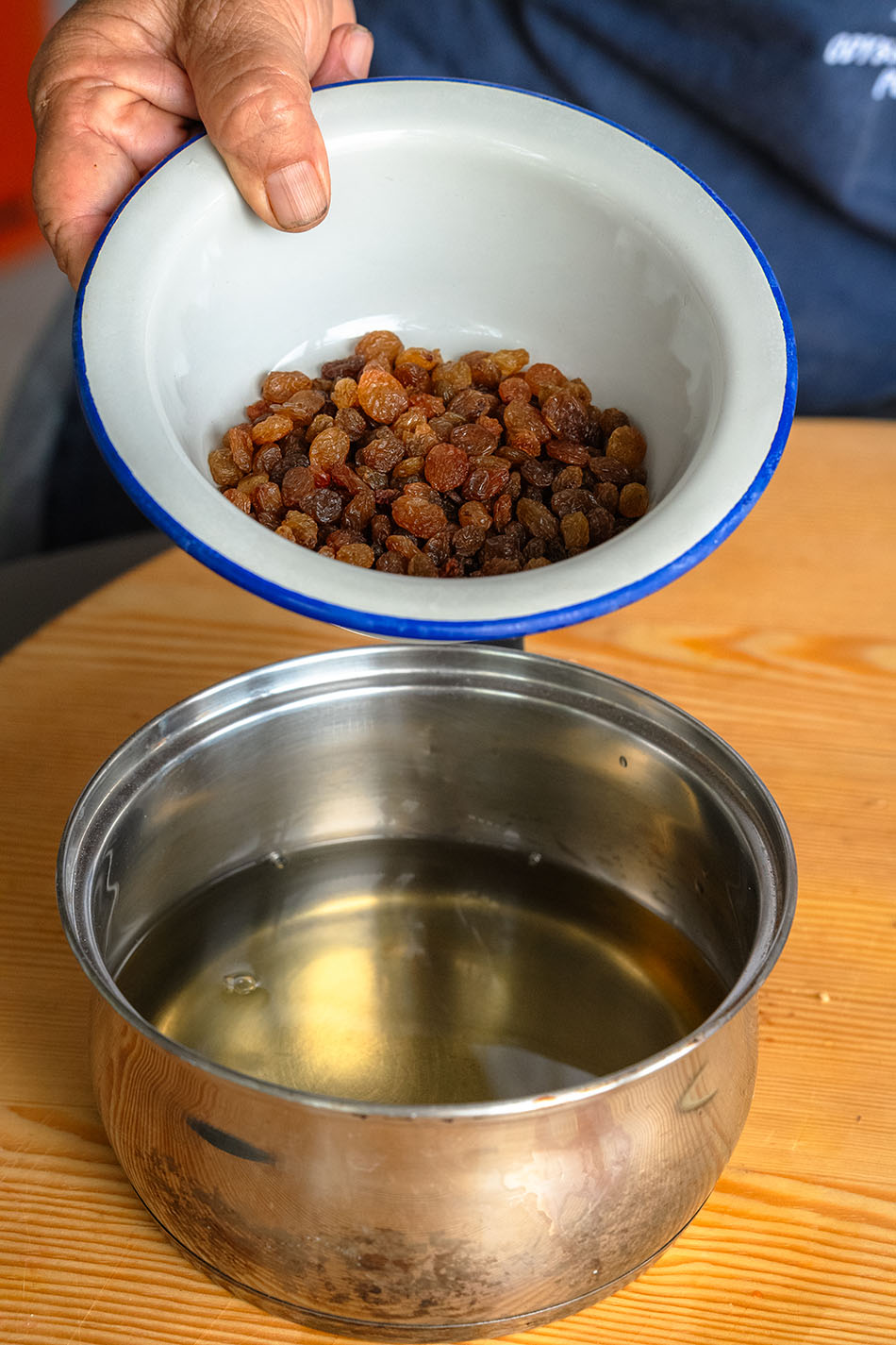 • Add Raisin Mix: Pour everything from the small pot (the plump raisins and the