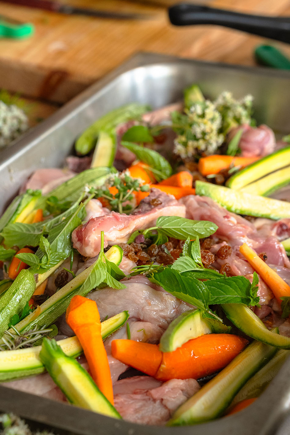 Katerina's Oven-Roasted Chicken with Wine-Soaked Raisins, Walnuts & Citrus