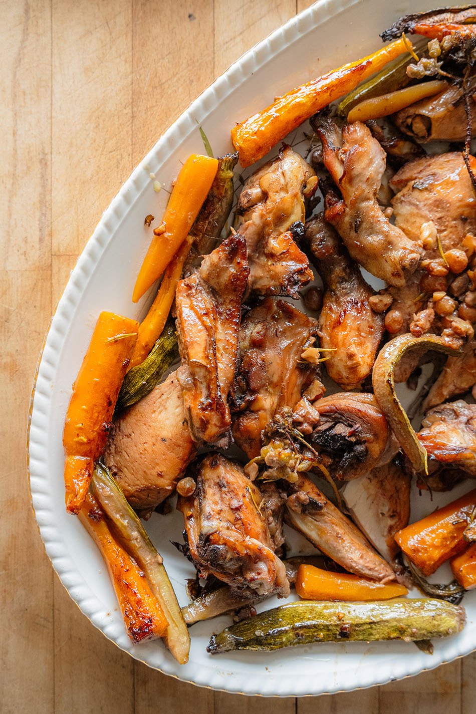• Move the cooked chicken pieces and the citrus to a nice serving dish. Cover it