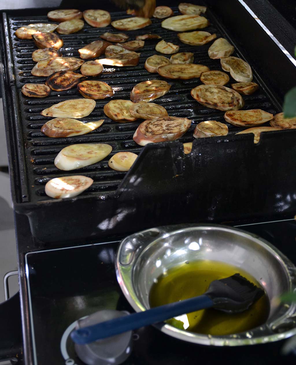 Eggplants are the most important ingredient. Once you have prepared the beef mince and the béchamel sauce, you cut the eggplants in slices and put them on the grill.