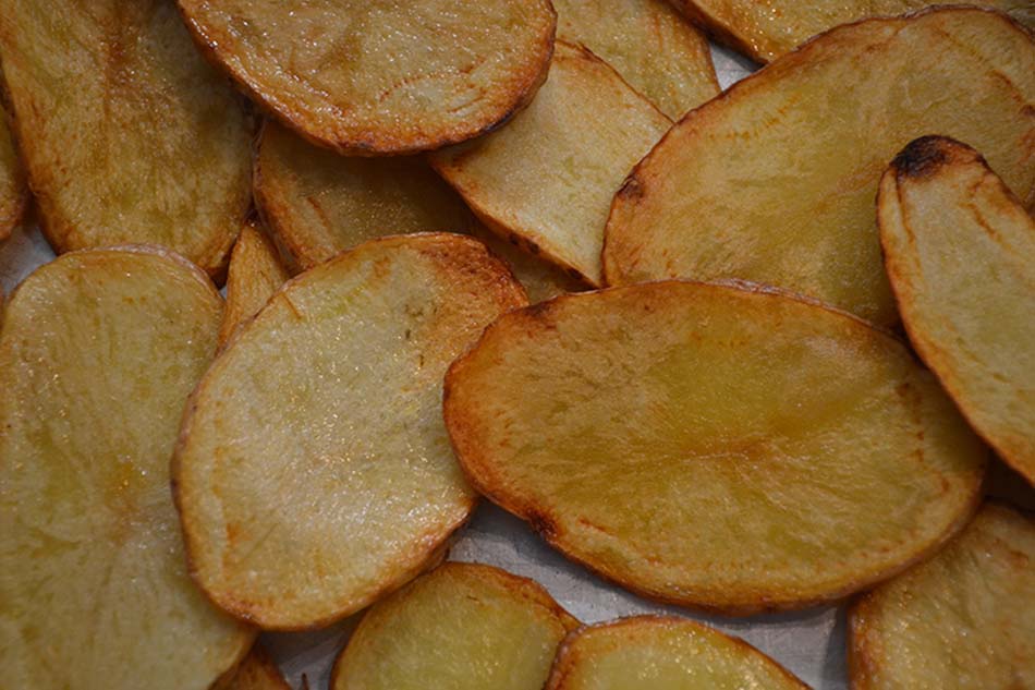 3. Grill the eggplants, brushing them with olive oil. Fry the potato slices in oil until lightly browned; set aside until ready to construct the Moussaka.