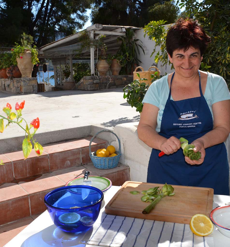 You can find good quality artichokes in the frozen section of your supermarket, but I prefer to buy mine fresh from the market in Poros-town. Look how beautiful they are!