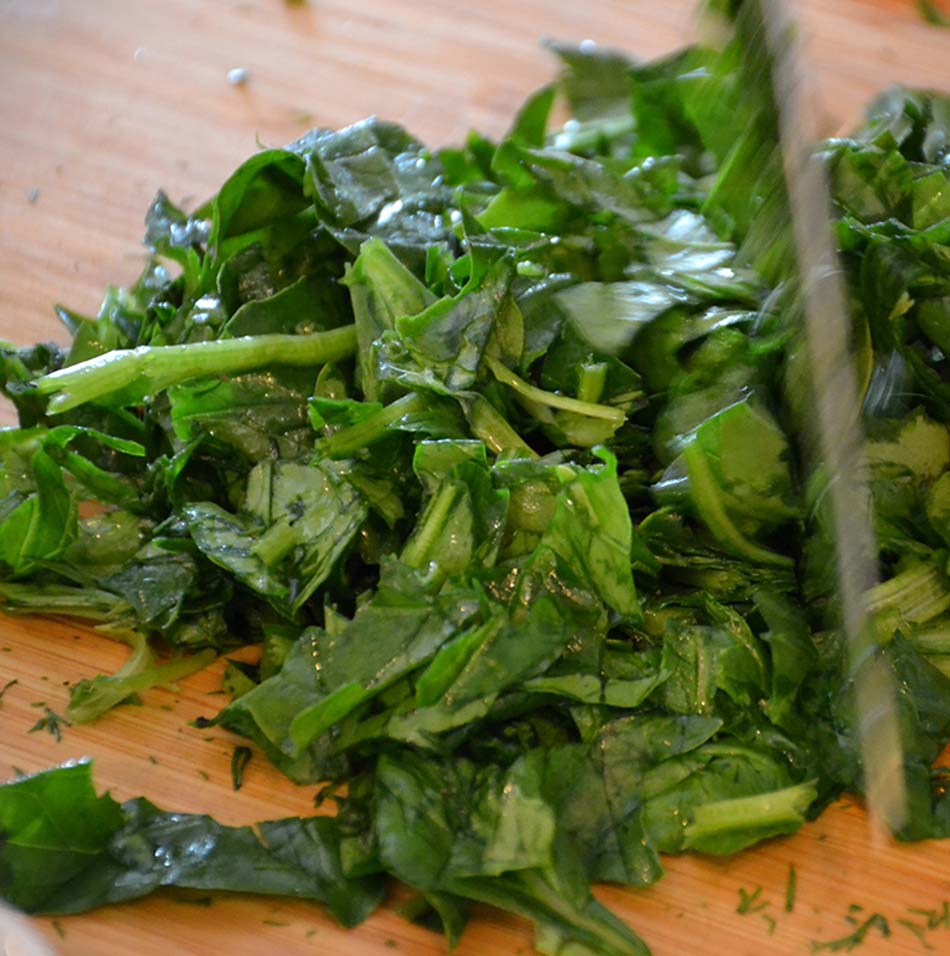 So especially for Elisabeth and all of you: here is the recipe! We start by chopping the ingredients, like the spinach.