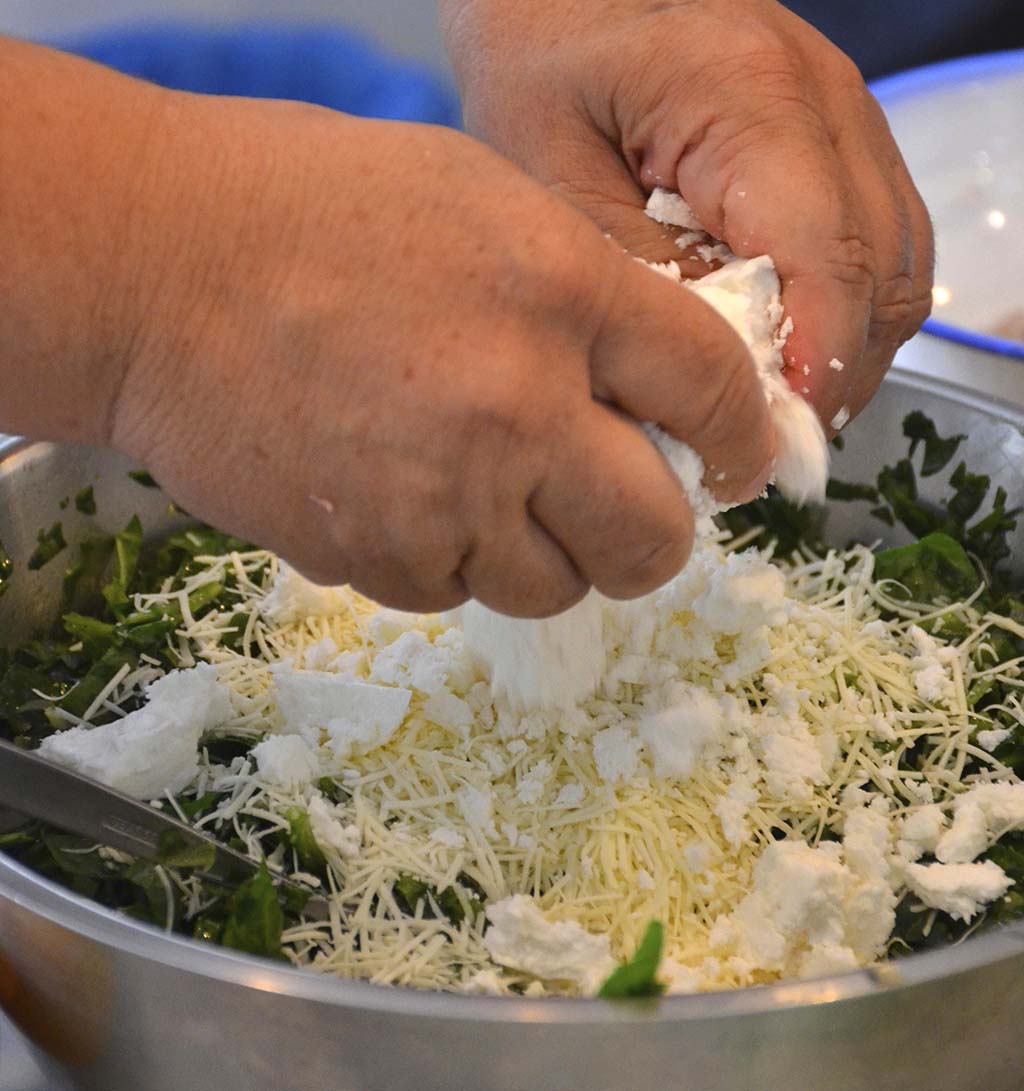 Mix all the ingredients in a large bowl, except the filo and 2 tablespoons of the olive oil. Feta is the most important cheese, kefalotiri and kasseri cheese are optional.