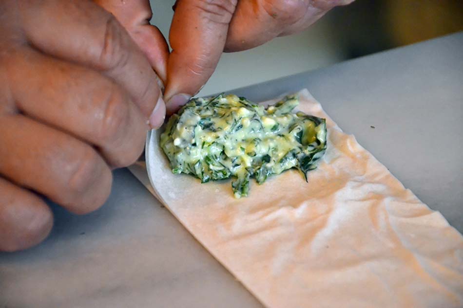 Making Spanakopitakia spinach triangles