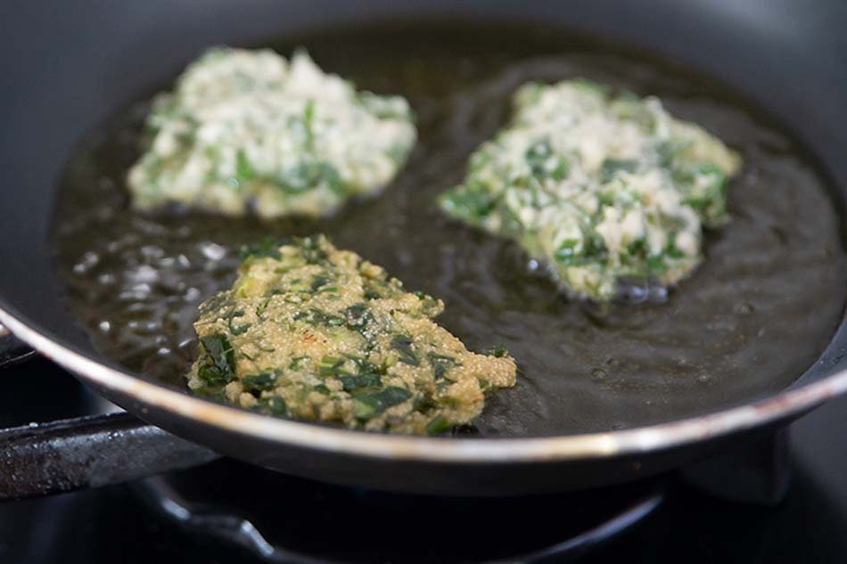 In Greece we call these vegetable-balls chorto-keftedes. It’s a wonderful and simple vegan meze that you don’t have to go to the Greek mountains for. You can use a lot of different leafy green vegetables like spinach, curly kale, chard or chicory, or any of the most common and most available greens you can find. Use what you have at home and create a nice change to your everyday menu! You can serve the fritters with my dip made of Greek yoghurt, fresh olive oil, salt, pepper, cumin and the zest of a lemon. Especially on a hot day it’s wonderful to drink for example a nice ouzo, tsipouro or beer with your horta fritters. Yammas!