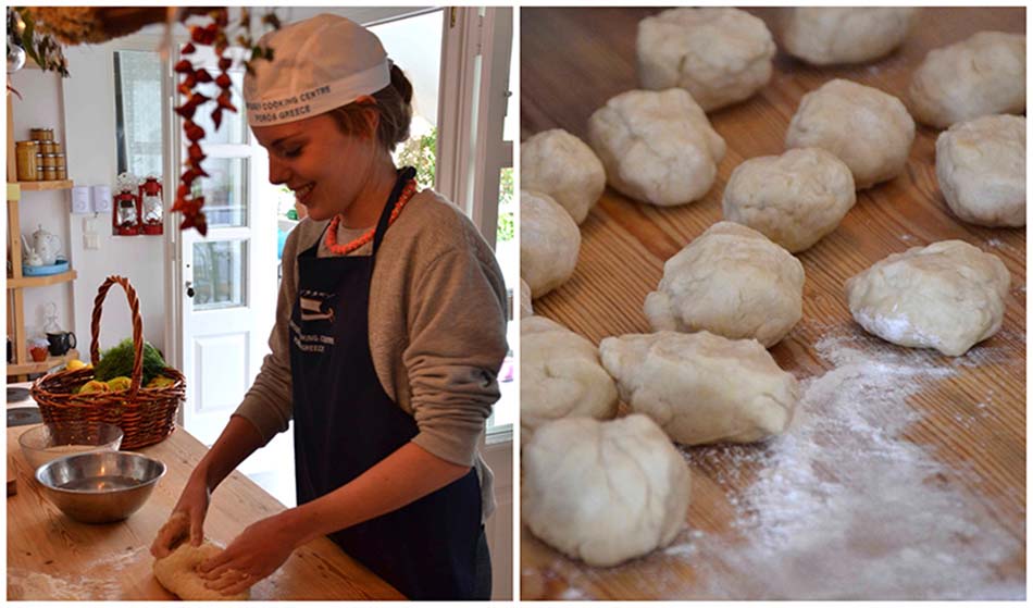 6. Knead each ball into a sausage shape, then gently turn ends towards each other to form a circle or koulouri. The rings should be roughly the same size.