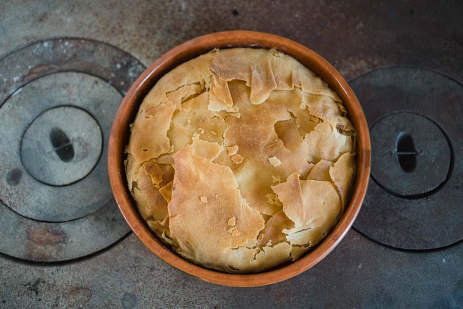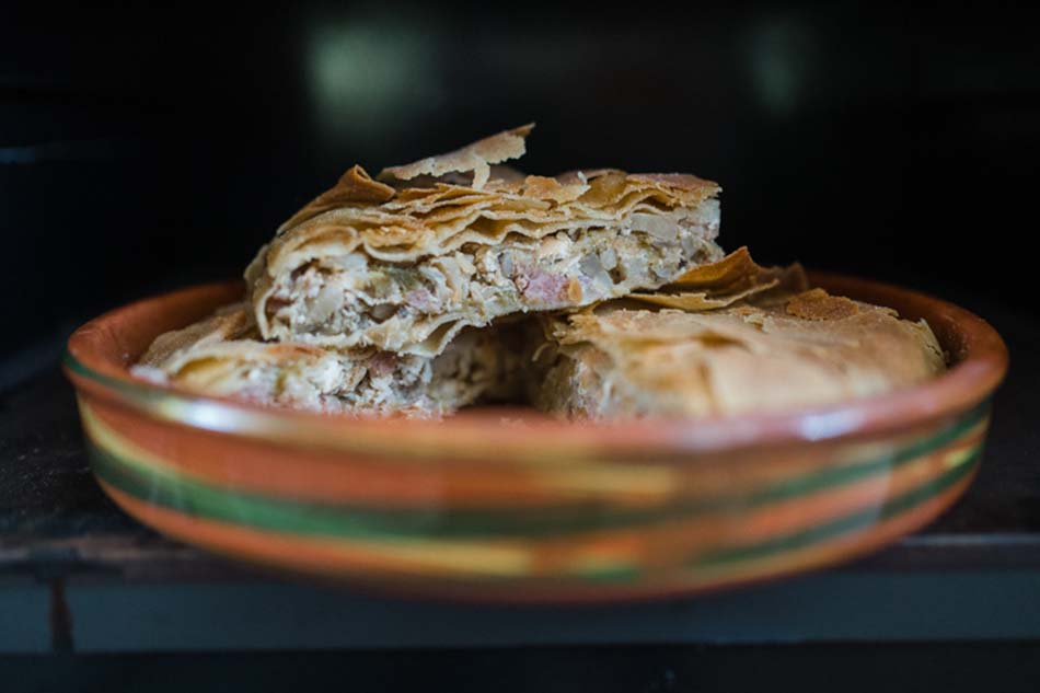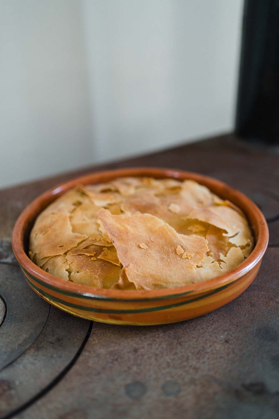 A lot of people buy ready-made filo, including me sometimes, but when I have the time and the energy to make the filo myself and when I eat it warm, it is like a present from God. So, I made my own filo for this recipe and it was so nice and worthwhile! What a precious moment of happiness around the fire on a Winter day. I think you should try this leek pie, you will love it. If you find it too difficult to make the filo you can of course buy ready-made instead, but do try to make it at least once!