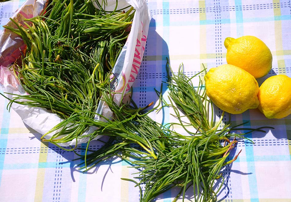 The salt cedar is one of the wild edible greens – horta – that we eat in Greece. It’s a green plant, with many short spikes that boils well and is eaten warm or cool. Never salt when cooking as the plant absorbs quite a bit of sea salt from the air where it grows.