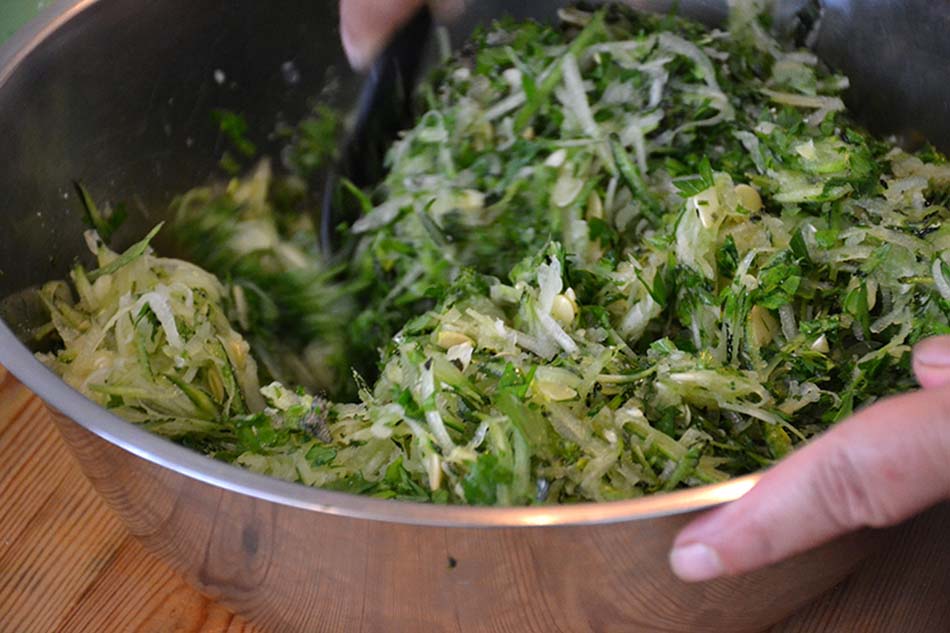 Then it’s time to grate the zucchini.